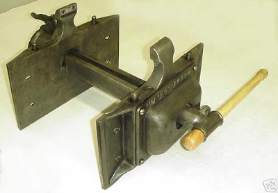 First designed and patented by Joseph Emmert in 1891, the amazing new "Universal" Patternmakers vises found great favor among the Patternmakers trade and was promoted as "The Iron Hand" and "The Peer of All Woodwrker's Vises". At one time, Pattern Making was the highest art that a young tradesman could aspire to. Patternmakers would produce the wooden "patterns" used in sand molds from which metallic items were cast in.